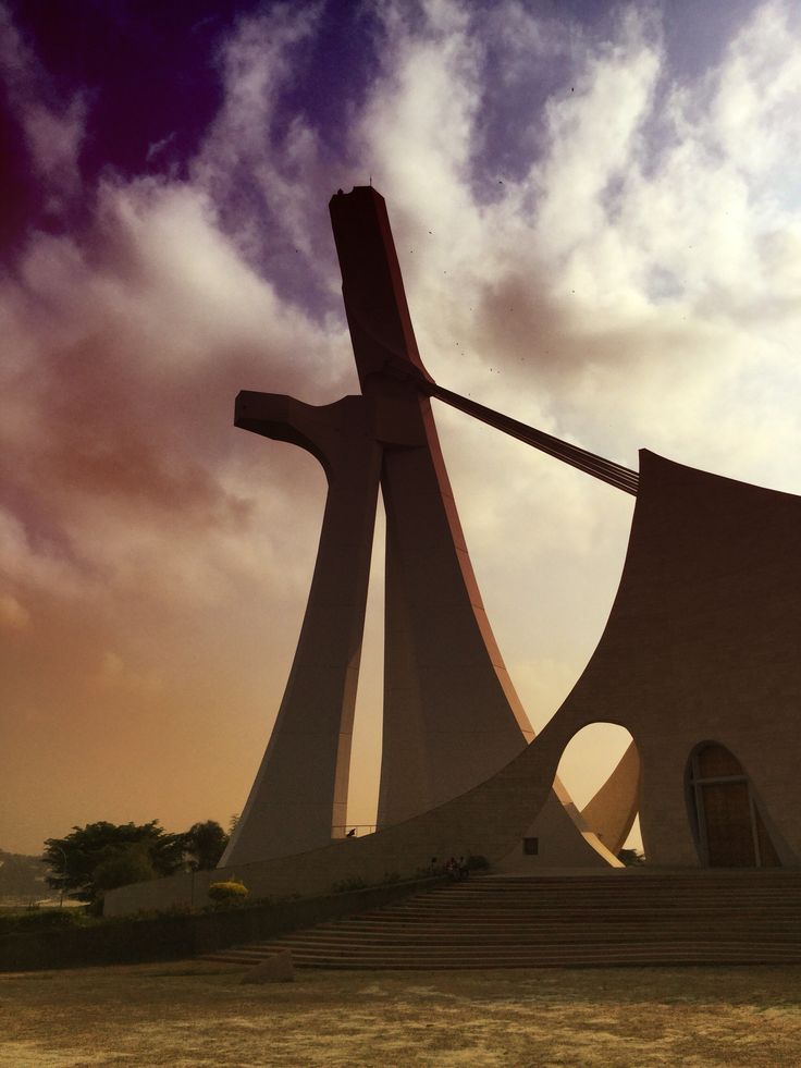 Conçue par l’architecte italien Aldo Spirito, cette cathédrale transcende sa fonction religieuse pour devenir un manifeste architectural qui dialogue avec le ciel tropical d’Abidjan. Son immense clocher incliné, véritable prouesse d’ingénierie, crée cette sensation troublante de mouvement perpétuel qui évoque l’élan spirituel vers le divin dans une modernité saisissante.