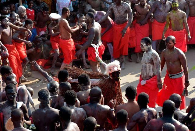 Les danseurs qui évoluent sur ces rythmes ancestraux offrent un spectacle saisissant. Le corps nu entièrement blanchi au kaolin, ils semblent sortis d’un rêve mystique. Seuls les initiés peuvent exécuter cette danse, et le refus d’y participer expose encore aujourd’hui à des sanctions traditionnelles.